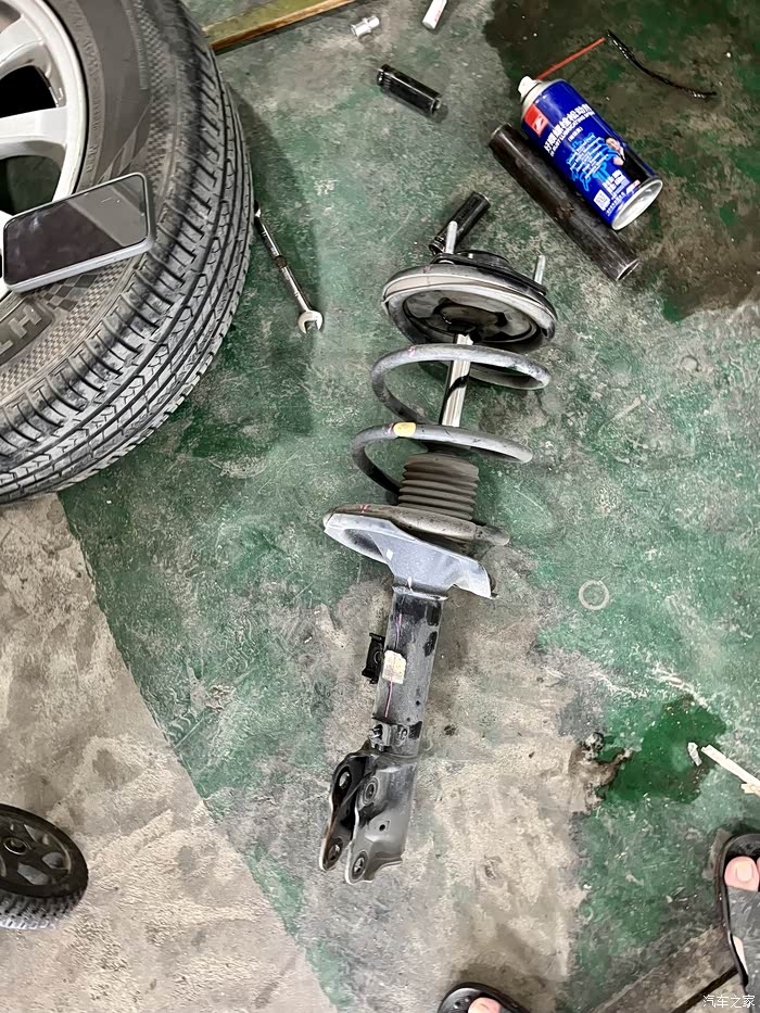前几天补胎的时候,发现一个前减震的防尘套断了,后来发现另一个也破了,就网上买了两个新的防尘套,周末有空就到汽修店给换上,花了120元的工费,小师傅花了2个半小时才给换好。