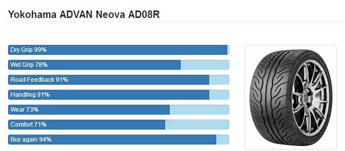 这款属于extreme high performance的半热熔胎,米其林是没有这个级别的,数据相当好,但是宝马只有18寸的前轮数据国内有售,后轮没有,略微尴尬,放一张AD08R的大家比较下。