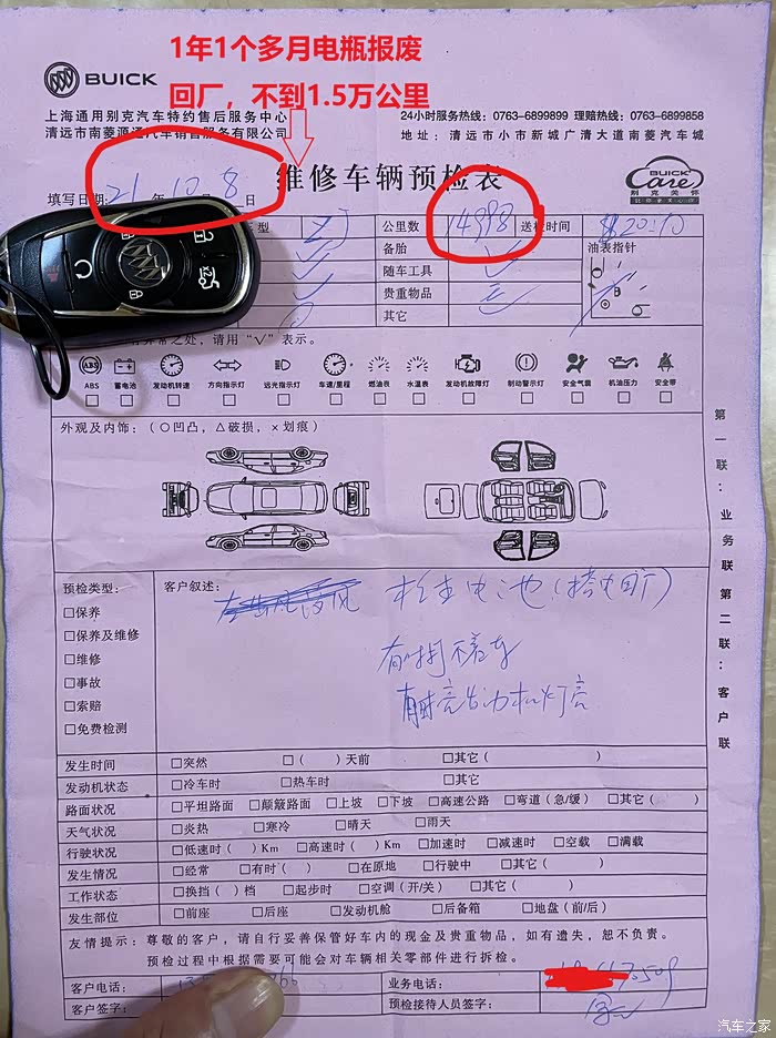 2020年8月买的别克新君越,1年2个月不到电瓶报废。