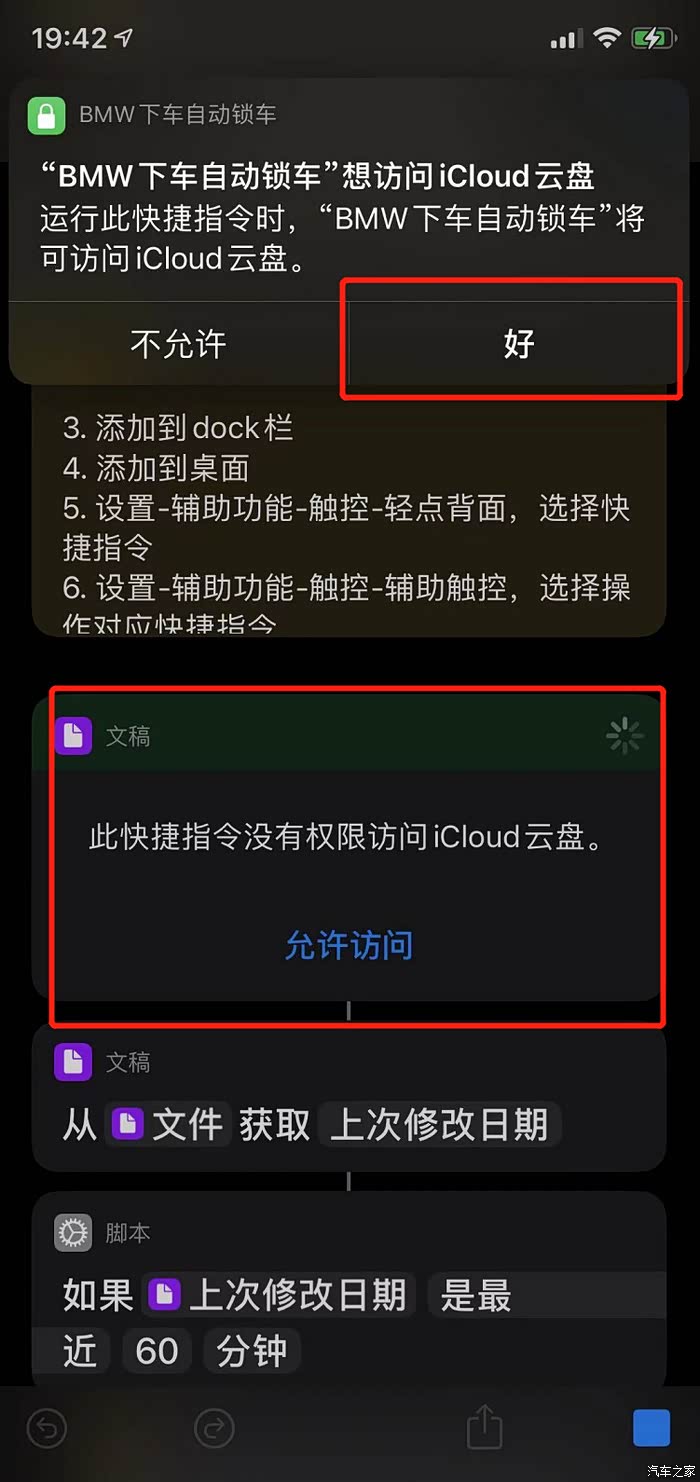 BMW快捷指令【自动锁车】:下车自动锁车,没关门窗自动提醒