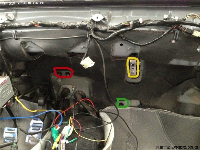 红色的暖风水管,黄色的空调管,绿色的空调水的出口