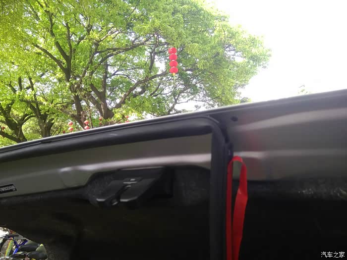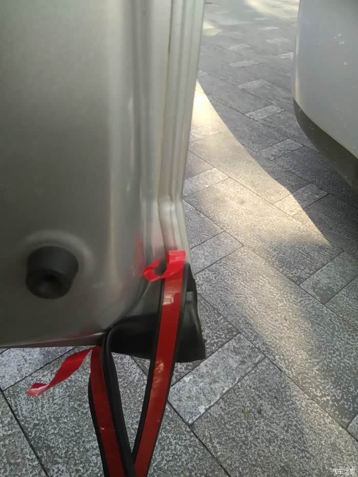 两边贴后的效果。胶条会与下面胶条重合,没关系,不影响关门。看论坛上确实有的帖在车下部的边框上,但个人认为没有贴在上盖上密封好些。