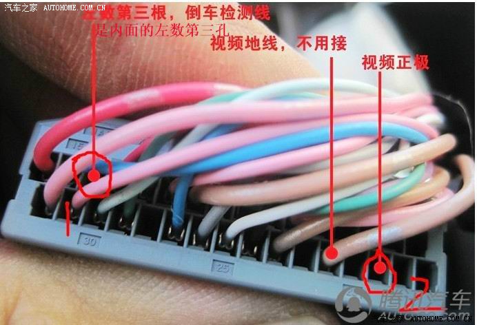 这是不用转接线的接法,倒车检测线是内侧的左数第三根
