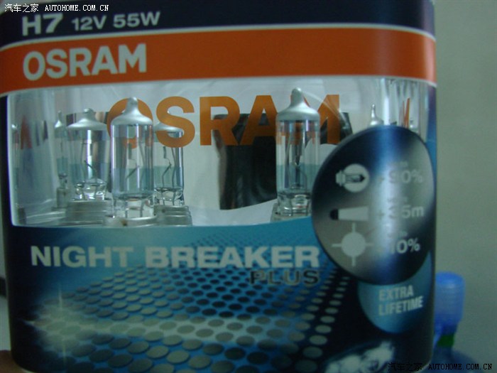 408的大灯还是不错的,但是感觉还有提高的空间,于是淘了一套欧司朗夜行者2代的大灯,H1和H7,接下来,按照说明书要求,卸下密封盖和电源线,408的大灯更换比较方便,密封盖和电线是分离的,就是靠近蓄电池一侧的近光灯更换是空间比较小,操作起来比较费劲,安装时注意手不要碰灯泡,不然油脂留在上面灯泡容易炸,原装灯泡也不差,飞利浦,德国制造,这点东标还是比较厚道的,换下来的灯泡用纯酒精清洗,留作备份,安装好后先不着急通电,检查一下电线连接和密封盖。安装后感受,灯光更白一些,亮度有增加,但没有宣传的那么夸张,提高90%,照射距离也有增加,左右照射幅度也有所增大,基本满意。下面上图。先是产品包装图