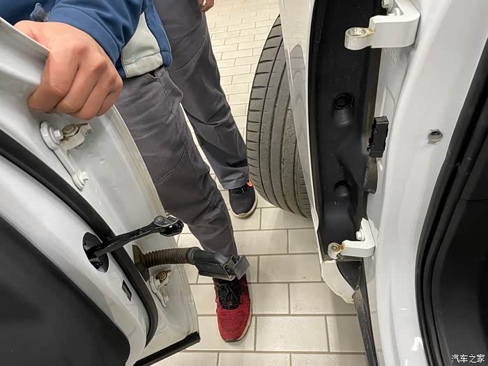 结果刚好有事,要去汽车城一下,于是乎干脆就不自己弄了,直接开去4s给售后看。去到4s店也是认定铰链有问题,先是搞点润滑油喷一下,貌似没有解决,接着又是拆车门,拆了后再搞点润滑油,异响基本消失,但试了几次,偶尔还是会有,最后维修师傅说先开着吧,问题不大,实在不行就换个铰链看看。我也想着先开着,毕竟异响没有之前那么明显了,又不影响驾驶,先开着吧,实在不行了再换。