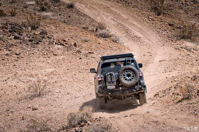 底盘方面必须为了迎合这些改装进行更多的强化,尤其是行走机构,所以17寸的轮毂下使用运动高性能的刹车卡钳,为了更好的提升刹车效率,还可以通过前后差速器来提升越野能力。与之匹配升级的还有悬挂系统,Icon Vehicle Dynamics悬架系统可以做到前122mm和后104mm的轮胎间隙。这套带有ARB空气悬挂系统的配置可以配合J201的多种驾驶模式,每种模式都会有不同的牵引力、变速箱换挡逻辑以及油门的响应也会有所不同。