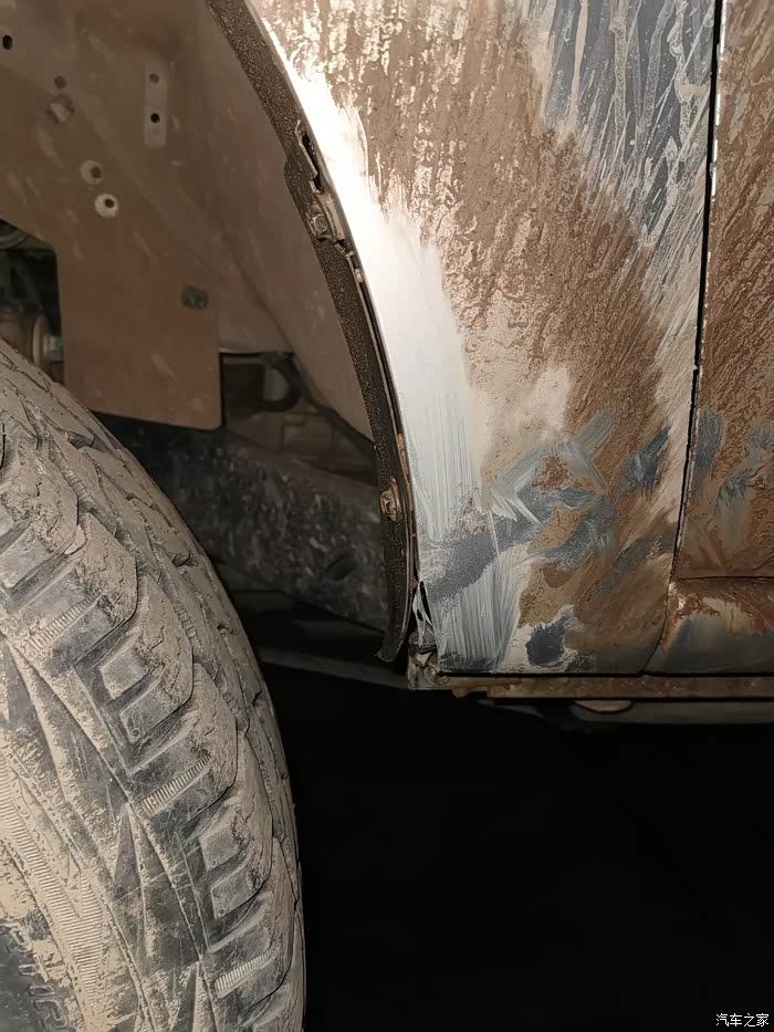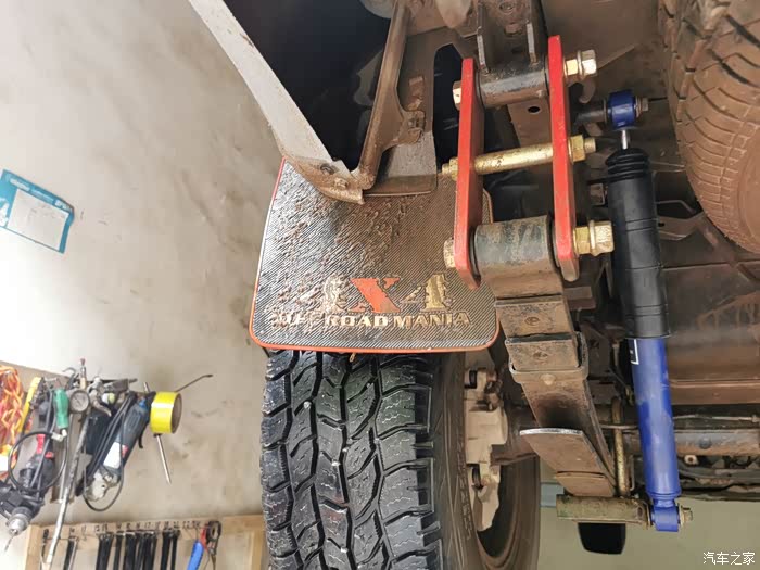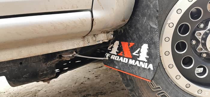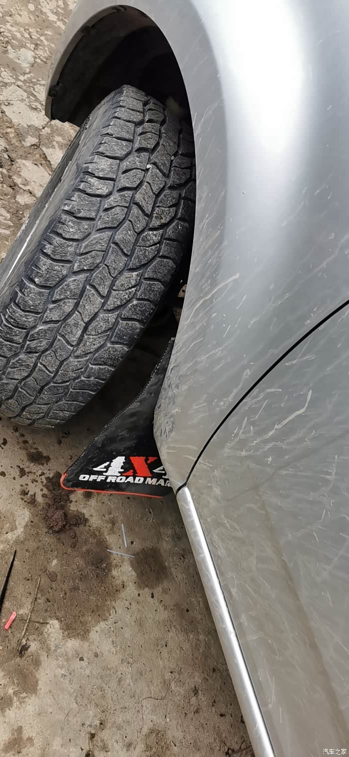 翼子板切了以后原车的挡泥板不能装 咱也不能惯着它 越惯着它甩泥越厉害 装了一对自己买的挡泥胶 虽然不咋帅 但比天天洗车好