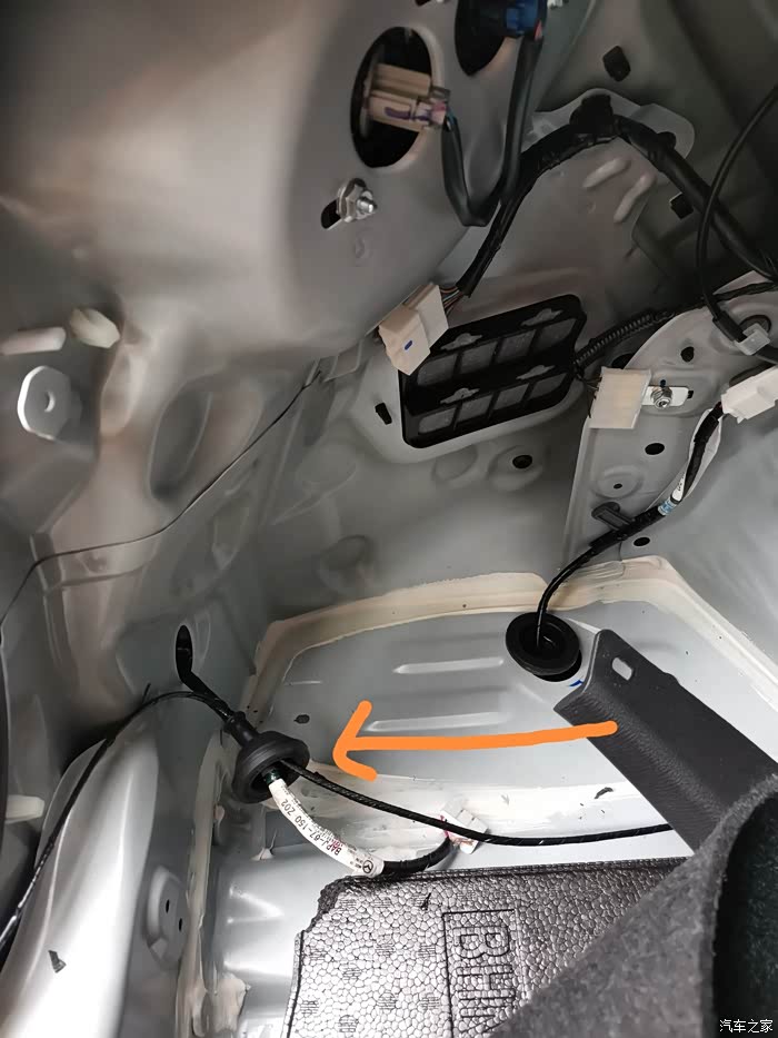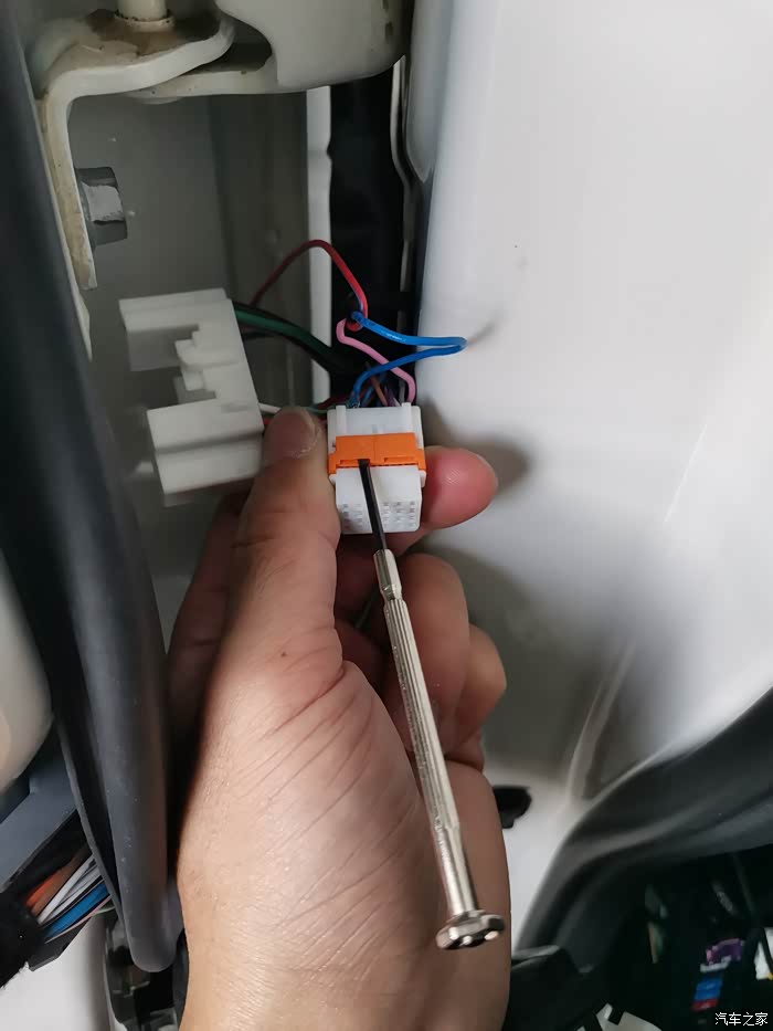 蜂鸣器线束穿过驾驶舱也是一样的操作,拆掉插头再穿线这样容易些,车辆走线***是最忌讳的,当然前后保险杠***除外。