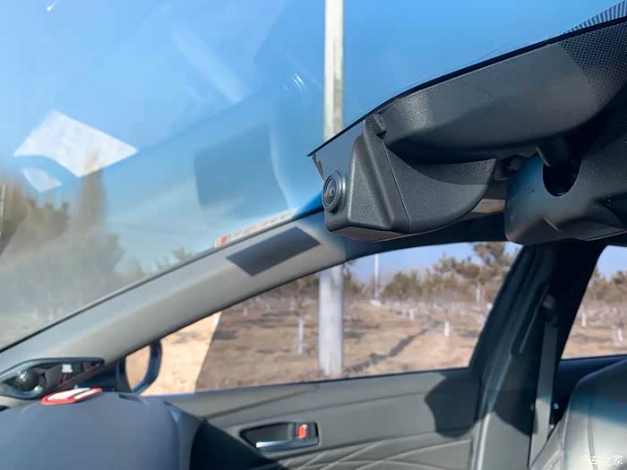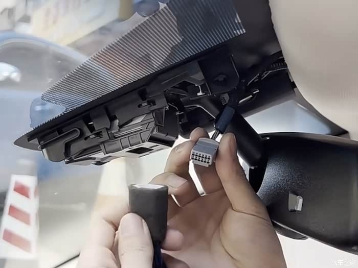 一分二插头直接插上,然后线可以拉长隐藏挡风玻璃顶部边缘,不用都挤在壳子里,这样主机就好安装。这个地方取电是启动车录影,熄火锁车断电关机,不会再耗电