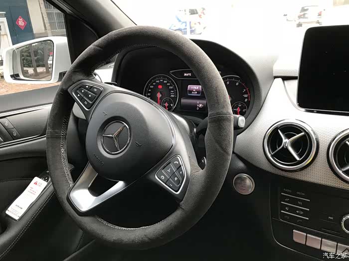 2.空间和乘坐感受。B200和GLA相比最大的不同就是车头短,由此带来的好处就是空间要稍微大一点,只是稍微,几乎可以忽略的那么一点大……我身高175,体重190,不折不扣的一枚胖子,前排座椅调整到位之后后排可以坐人,但二郎腿就别翘了。前排座椅坐着比较舒服,虽然不是真皮,但柔软度和包裹性勉强说得过去,但要是和GLC那套仿皮座椅比较一下的话,还是有差距,但价格也是有差距的,这就是现实……吐槽一下后排的座椅,座椅角度几乎是垂直的,而且座位略短,这样就显得整个座椅有点板,我坐在后面十几分钟就有点累了,出远门的话估计挺受罪。