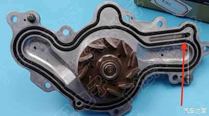 至于为什么没有大批量的车主中招,我结合马云家找来的图(希望卖家不介意),看到第二张图右上角那里在两个垫圈之间有一个横的出口,再看第四张图,右边那个拆掉水泵的图,那个重合的部分箭头处有一个小圆洞。