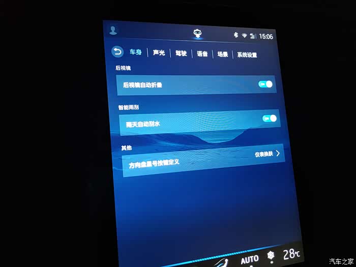 很多的车辆设置都是在这里操作的,比如后视镜自动折叠,等等