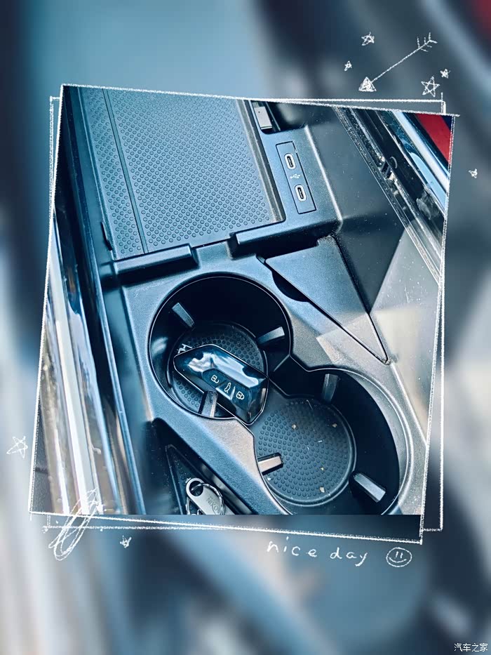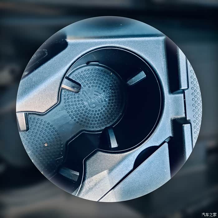 打开车门,下面就是启动车辆了,ID4X在车辆钥匙没电的情况下是可以应急启动的, 在中央通道杯架的地方有一个钥匙的感应区,我们只需将钥匙放在这个应急感应区,就能正常启动车辆了。