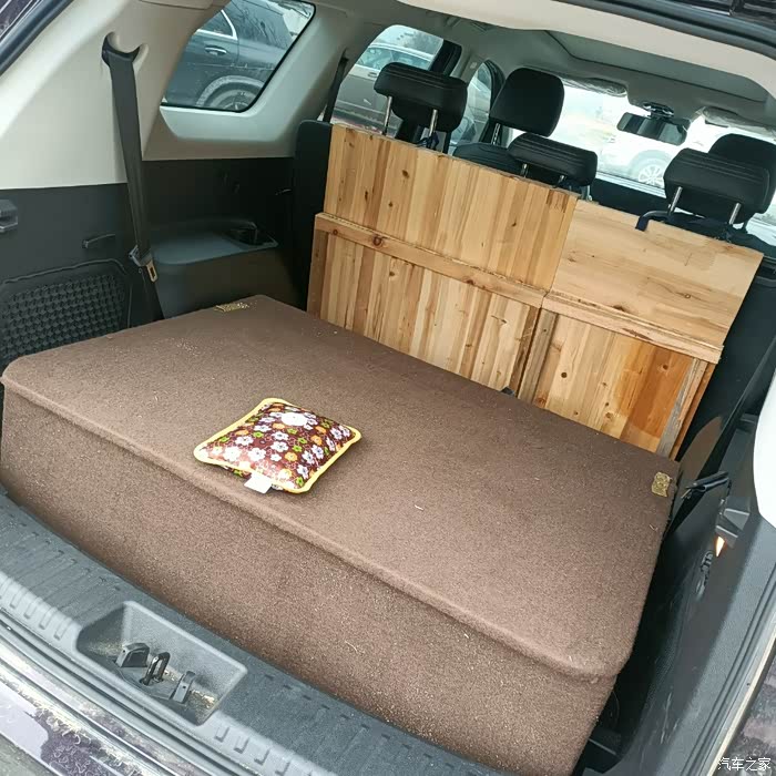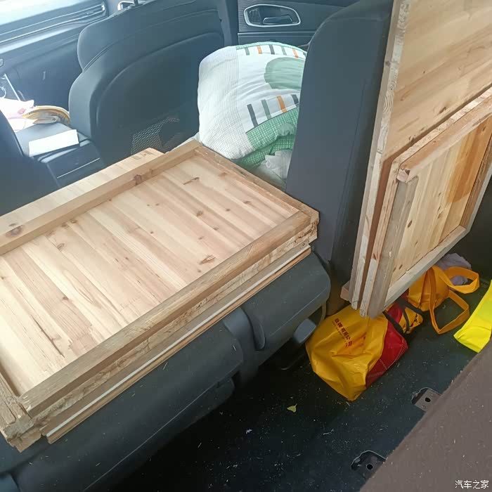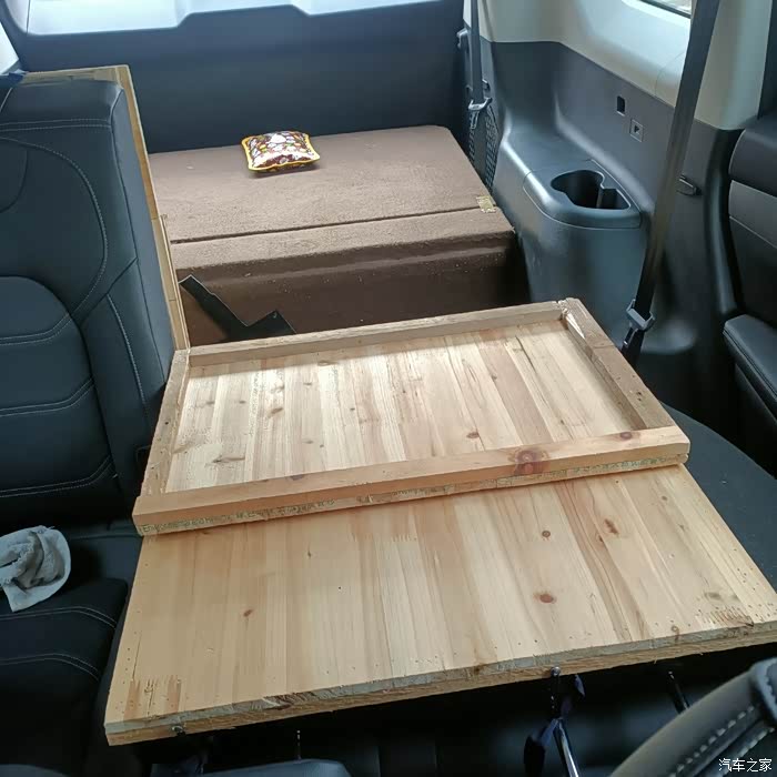 在使用中发现整块板子每次铺床收床在车内诸多不便,今日再改,改成折叠的了,直接用魔术贴粘在车座靠背上,收放简单了,方便快捷并且还多出了许多空间有利于长途旅行,最后再来个油耗镇魂,版主该给个精华了吧