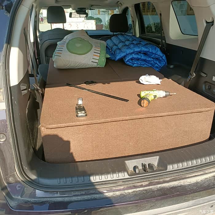 包上个棕色的毛毡地毯就好看多了。大体算是竣工了,等后续再加一个折叠的桌板就算是可以将就用了。原来开艾瑞泽7到西藏去玩,后来又开瑞虎8到新疆去玩,车是越换越大,总觉得空间不够。做这个箱子还有一个目的,因为我的工具包包啥的全是放在车里面,每次晚上总是担心会被敲玻璃,小偷不知道你包包里面装了啥好宝贝。小区里面别人的车都被敲了好几回了。