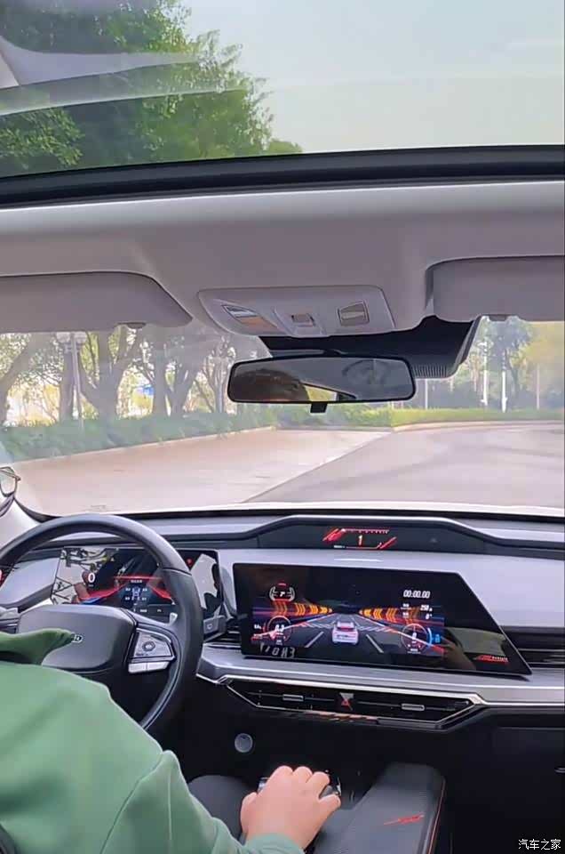 听说欧尚Z6的几个驾驶模式中,赛道模式最有劲,所以今天我就试了一下它的这个模式。说实话,个人感觉赛道模式下,油门的灵敏度和运动模式差不多,只是赛道模式多了声浪,而且屏幕上会有三屏同显的赛车画面,在视觉和听觉上让人觉得更加亢奋,所以潜意识里觉得赛道模式更带劲吧。