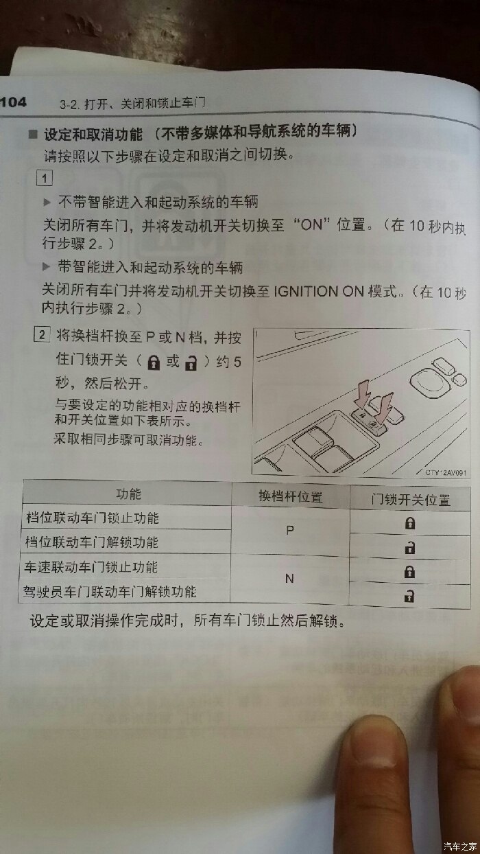 没事看说明书,知道了自己设定p档自动解锁,挂出p档自动上锁,跟论坛的朋友们分享下哈。。。