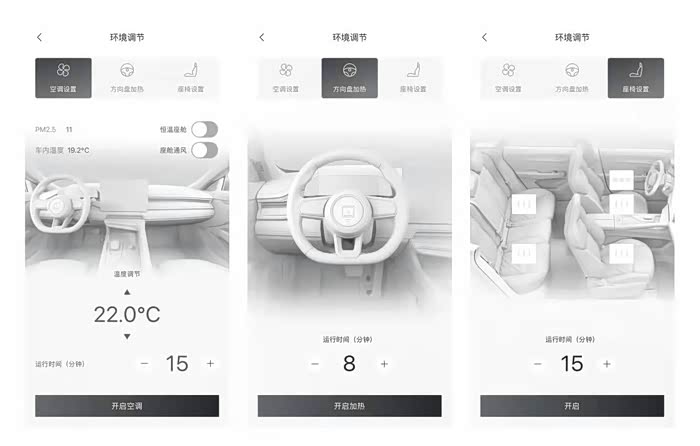 如果你没时间提前打开车内空调且着急用车,你可以使用座椅和方向盘加热。温度支持三挡调节。对于之前购车没有选购暖温包服务的,同样可以通过个人实际用车情况,在后续订阅开通暖温包服务。