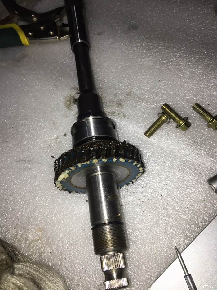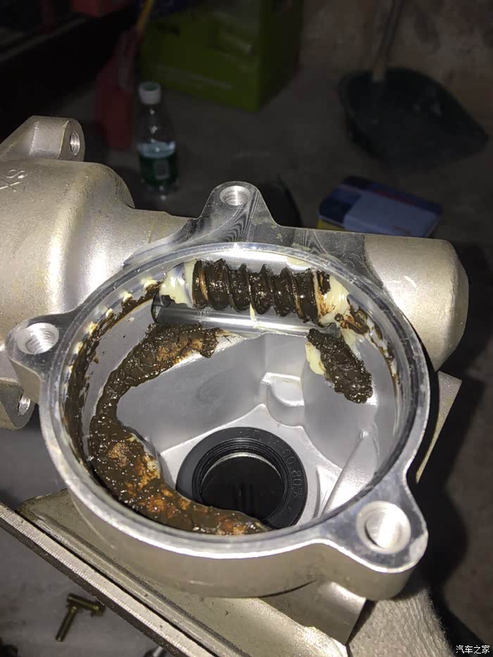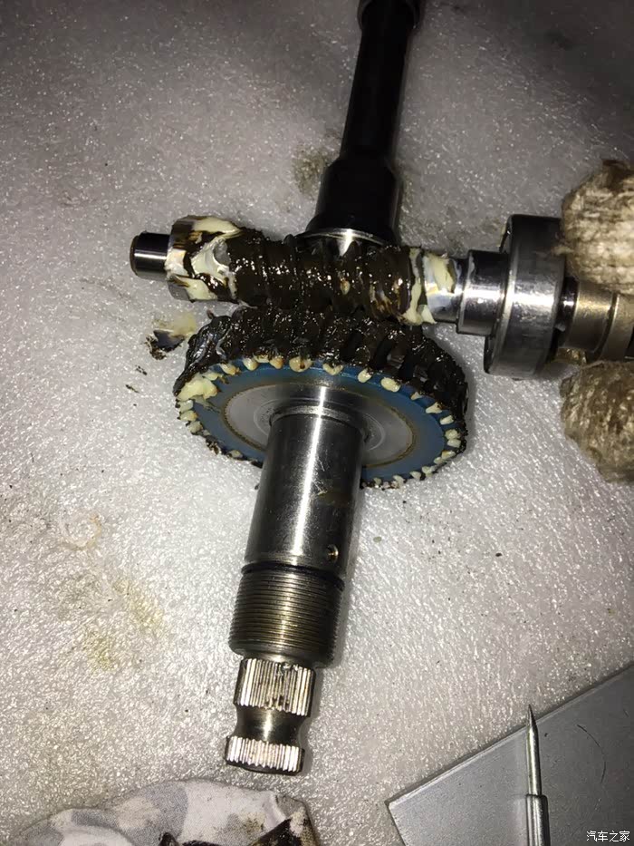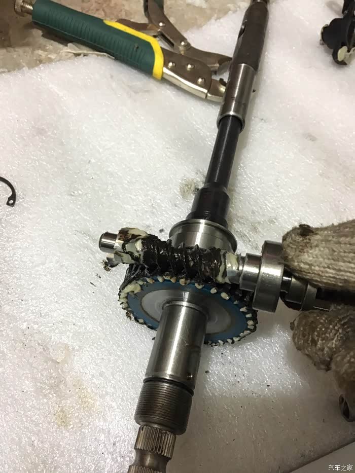 问题出现在这,方向机出厂时不知加了什么牌子的润滑油,时间长了,润滑油干了,变成油屎卡住齿轮。