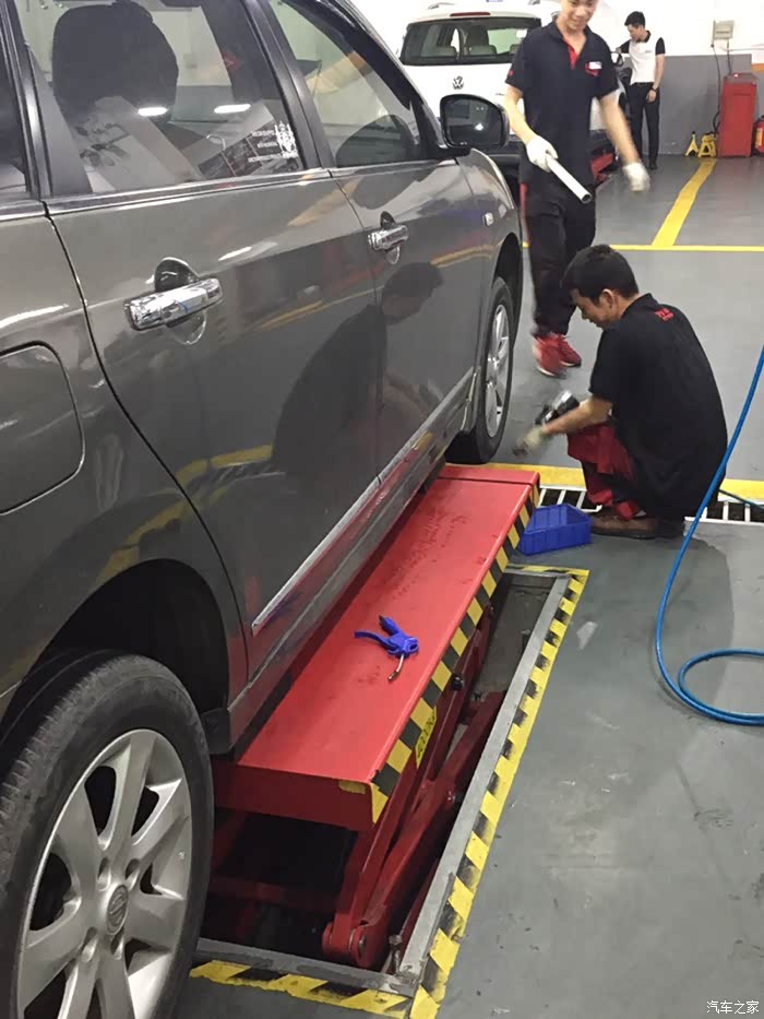 轮胎终于安装好了,在全车检查中,发现了前两个摆臂的胶垫坏了,就叫师傅报价和订货。