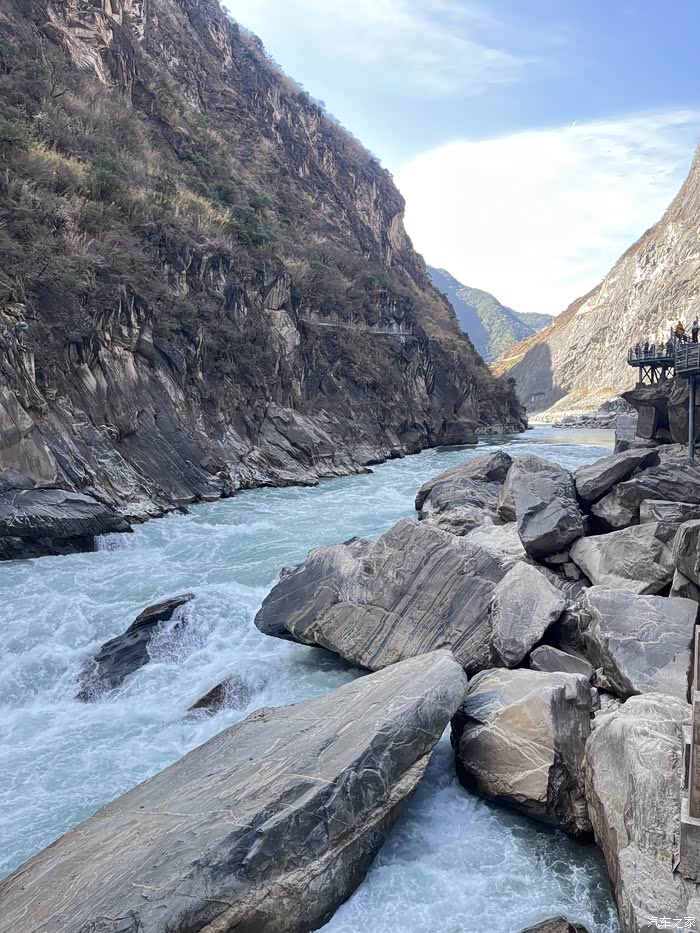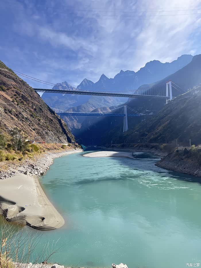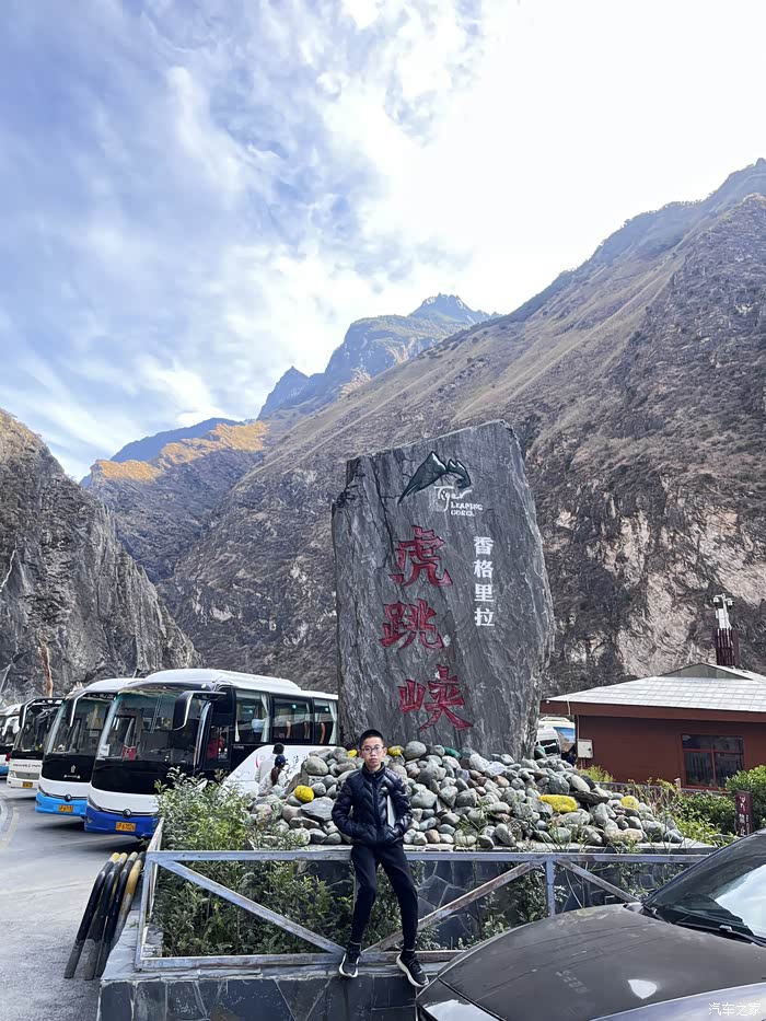 从丽江特斯拉满电出发到香格里拉电是足够的,我们在丽江上高速走了大概七八十公里高速就走214,然后入虎香公路,这一段风景不错上虎跳峡,白水台,广东身份证免费,省了210元门票