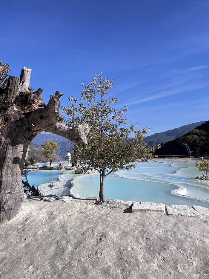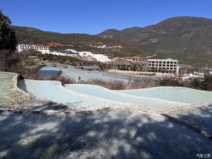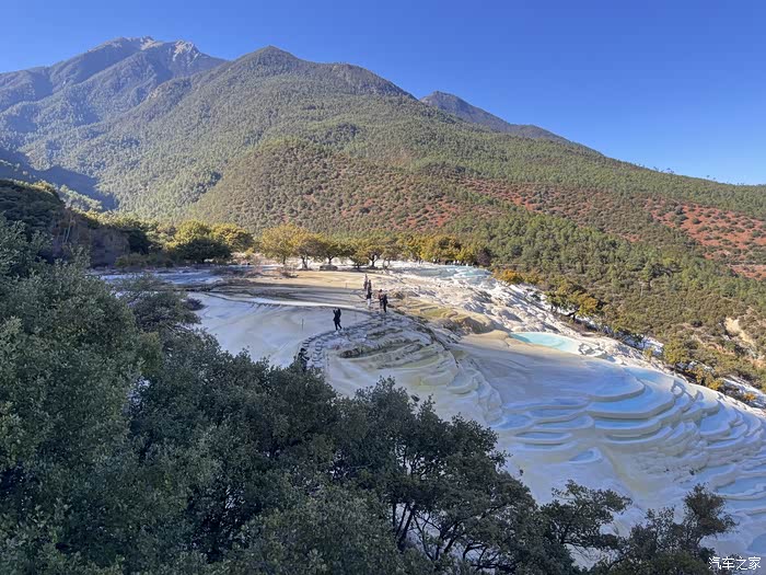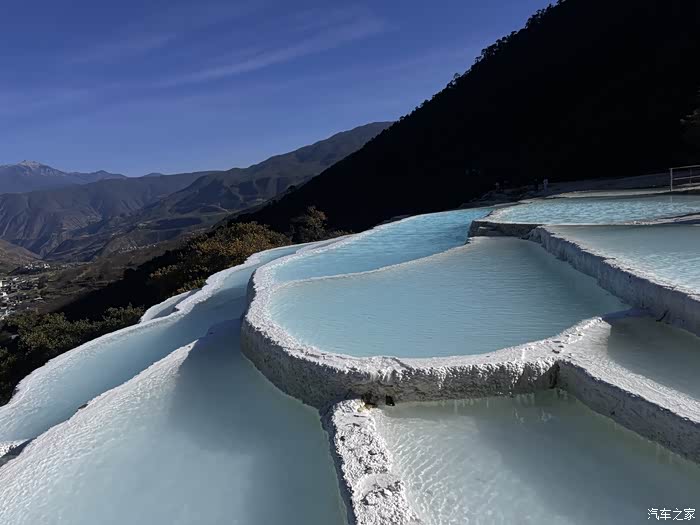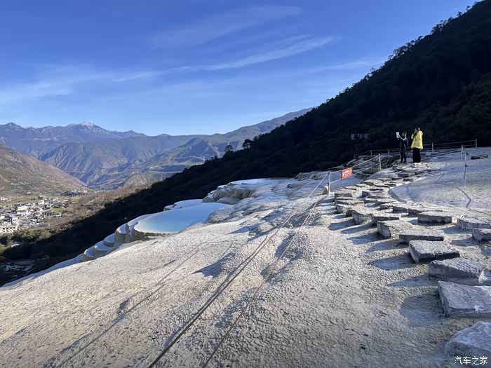 因其泉华台地层层叠叠且呈白色远看状似梯田,故称白水台