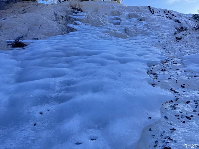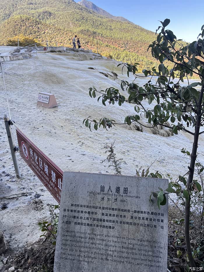 白水台因碳酸盐长年累月的沉淀,形成台幔,好似层层梯田,故有“仙人遗田”的美称