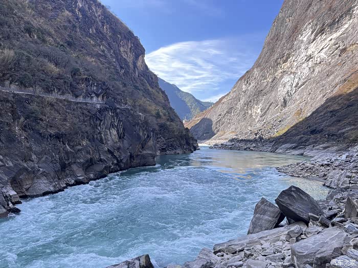 虎跳峡景区南岸为玉龙雪山,北岸为哈巴雪山