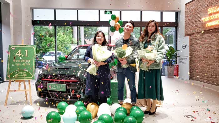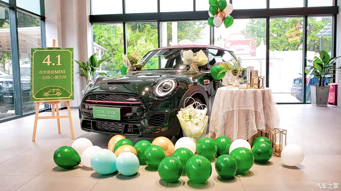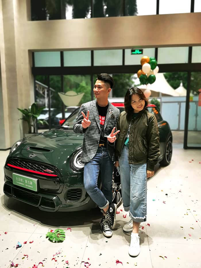 MINI经典三门、经典五门、MINI CLUBMAN、MINI COUNTRYMAN、MINI CABRIO。。。我都开始眼花缭乱,可以选择的实在太多太多了,也作出不了选择(因为都好喜欢,原谅我这少男心,嘻嘻)。最后的最后,阳阳姐就说了一句:我们店过两天会有一台“复古绿的MINI JCW”到店,要不车子到了我通知您来看看。”