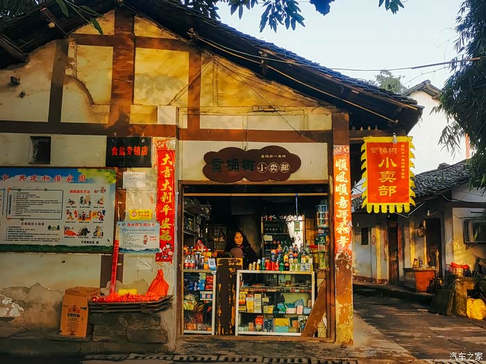 古镇的黄角树小卖部,这里 不知道留下了多少人童年的回忆~ 小卖部门口摆放着烟花鞭炮,门柱上贴着喜庆的对联~