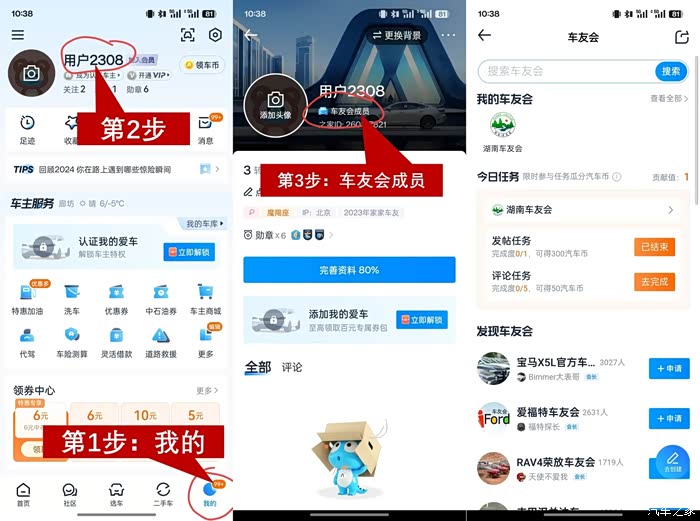 如何在汽车之家进车友会,如何联系会长?两张图片就可以明白。