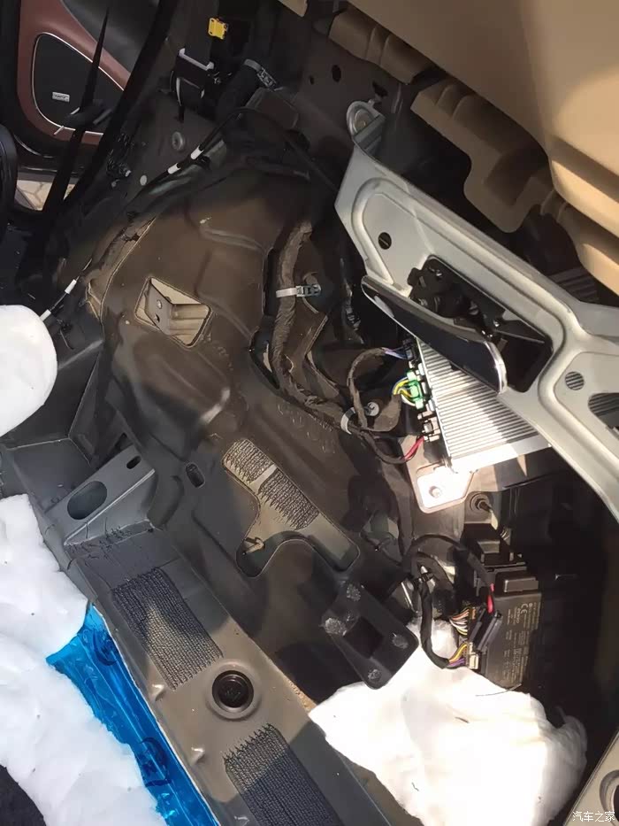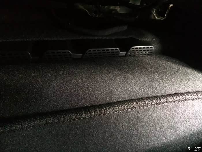 后排的下面有两个洞,直接可以看到铁,根据后面的保险盒箱推断,这里原来应该是后排电加热预留的地方