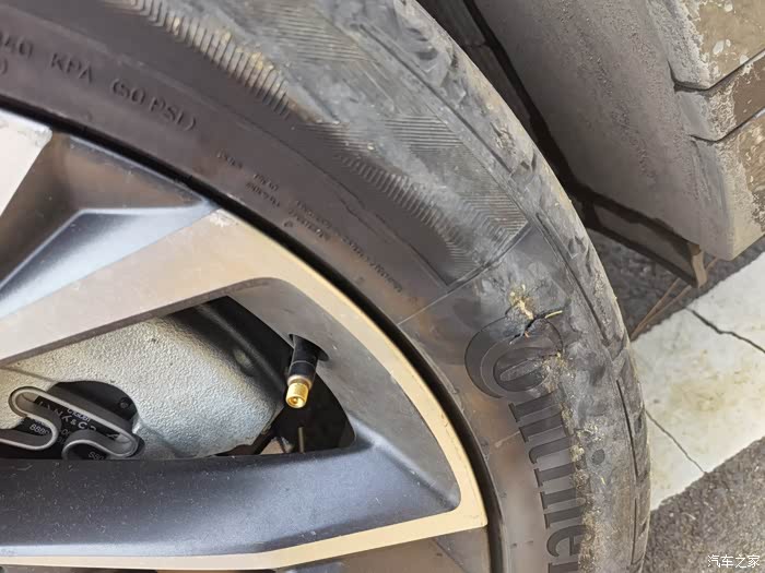 09刚上牌,开车去郊外,过村子里防控疫情时设的路障时也没减速,不慎划破了右侧前胎的侧面,只能换胎了。
