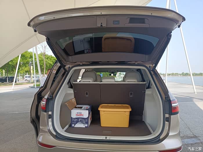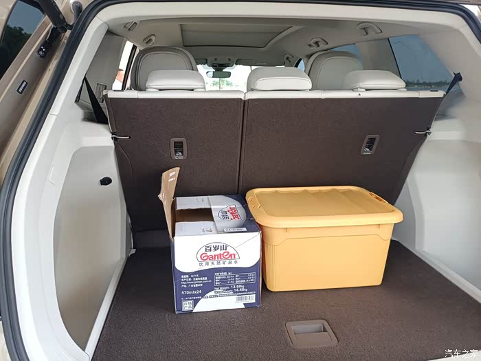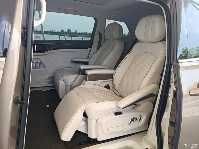 空间非常满意,五米多的车长,七座的设计,尤其是中间两个商务座椅,航空头枕,座椅带通风加热和按摩功能,带90度可调节腿托,腿可以伸直,既适合家庭长途出行,又适合出去见客户谈业务,太完美了。后备箱空间也非常够用。