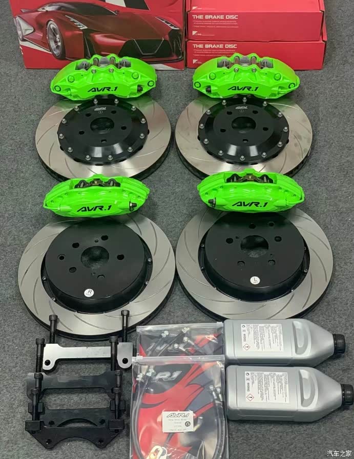 然后是驾驶和操控方面,方向盘的轻巧程度很高的,底盘悬架非常的紧凑,转向的时候非常平稳,所以在驾驶过程中是比较平顺的一个表现。但是因为原厂的刹车前段比较空,中后段偏硬,导致高速热衰减明显,适合车速不快的城市路段使用。所以结合我的用车习惯,决定改装一下刹车系统,参考了车友们的推荐,我也选择了avr.1这个国产品牌的刹车,他的重量比原厂轻,前段制动踏板不空,反应快急刹车不点头,告诉刹车热衰减少,噪音也少,适合高速和越野使用。我选择的具体型号是卡钳前A60,锻造6活塞,后F4B,锻造4活塞;
