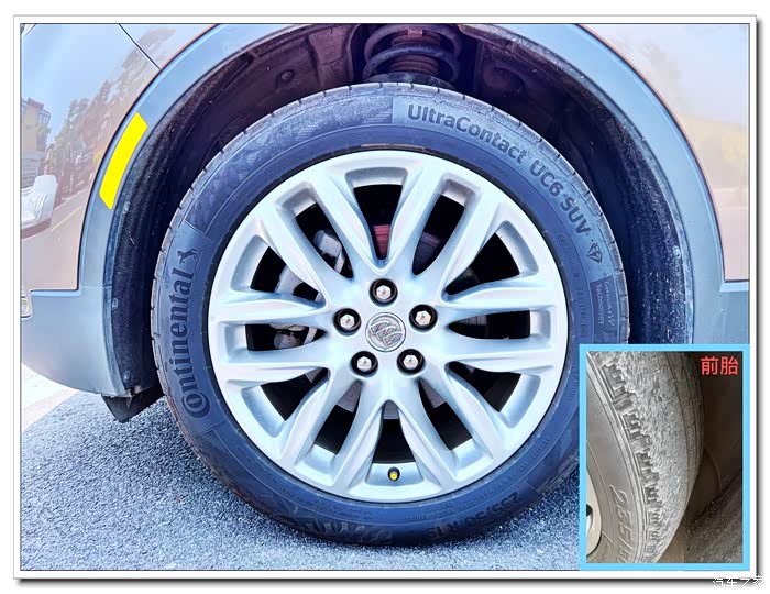 原厂胎为固特异,现在前后胎不一样啦,看着有点别扭,后胎磨损状况还行,先继续用着吧