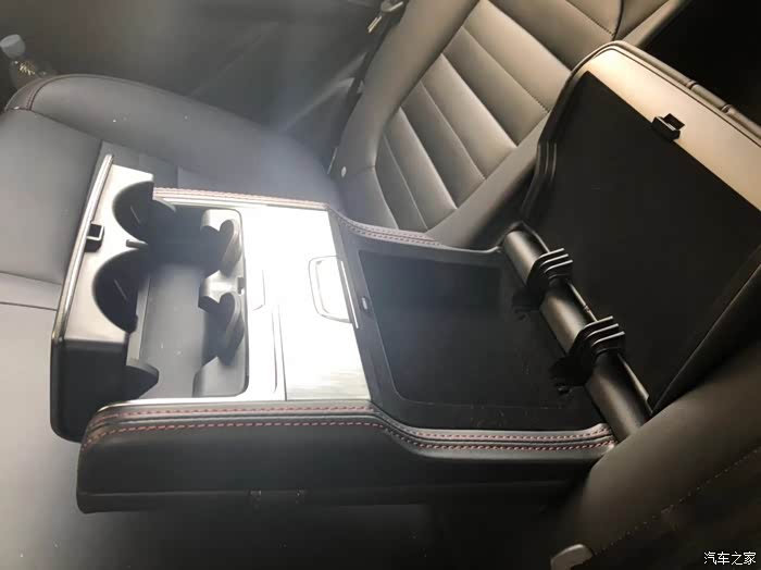 后排除了门板上的储物空间,打开后排中央扶手有两个水杯架和一个小储物格。另外前排座椅的背部也是有储物空间的。