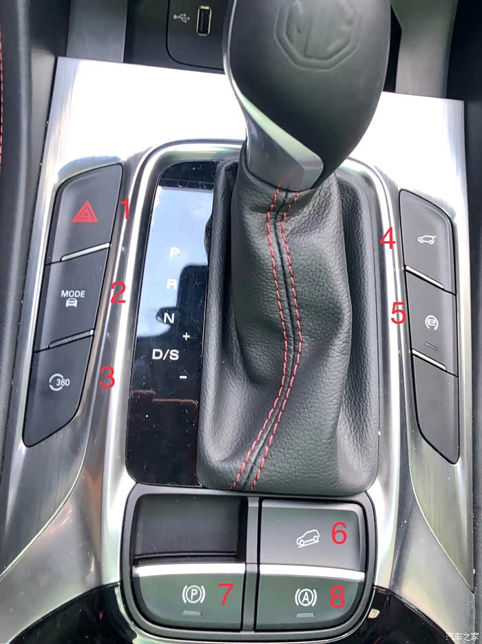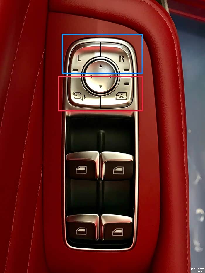 红色框内从左往右依次为后视镜折叠和锁窗按键。