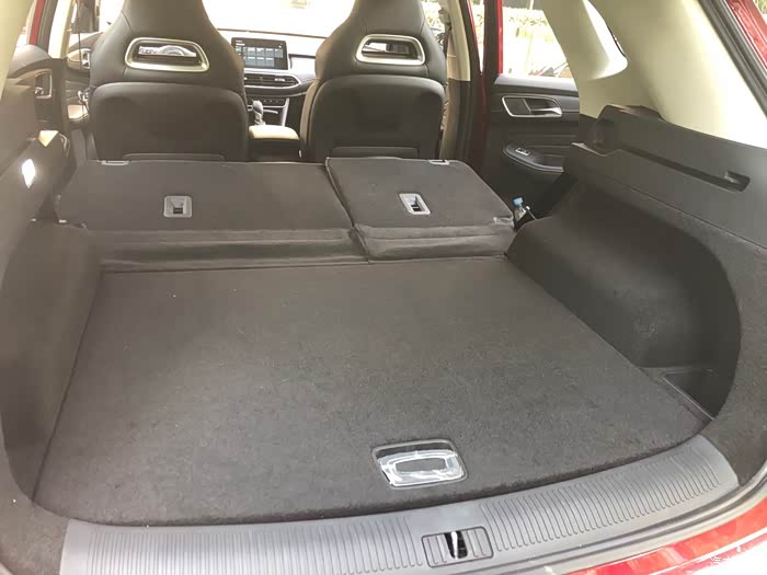 后排座椅放倒可以和后备箱形成一个纯平的平台,还是十分实用的。