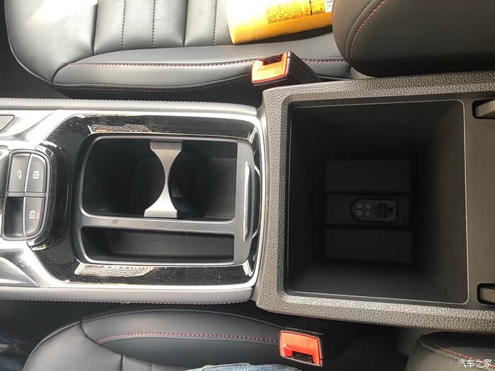 HS的储物空间还是非常充裕的,前排有两个杯架(可以把中间的格挡拔出来调整大小),一个卡槽(放下手机什么没问题),还有一个挺深的中央扶手箱(扶手箱内有出风口,夏天在里面放瓶饮料什么是不错的选择)。