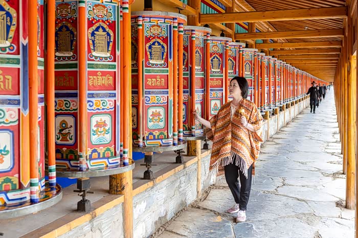 拉卜楞寺拥有全世界最长转经长廊,共有2000余个转经筒共长约3.5公里,转遍每个转经筒至少需一个多小时。