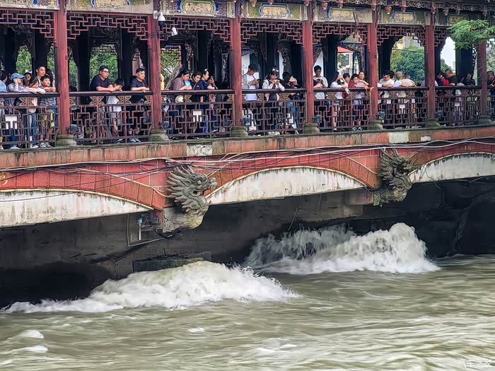 南桥下奔腾的黄绿色江水就是从都江堰中涌出的岷江水