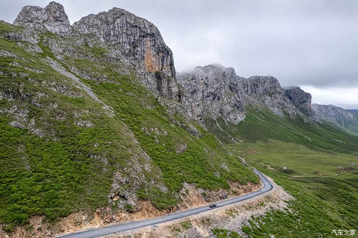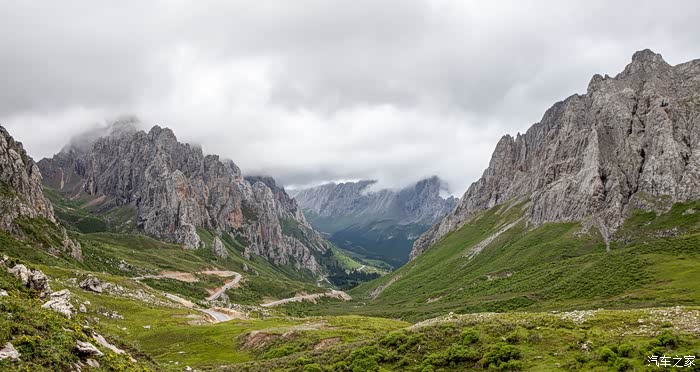 从扎古录镇行驶约30公里后,道路成了非铺装道路,手机也逐渐没有了信号,但是洛克之路真正的精髓风景也来了。原来在山谷中的蜿蜒小道变成峰回路转的山路。