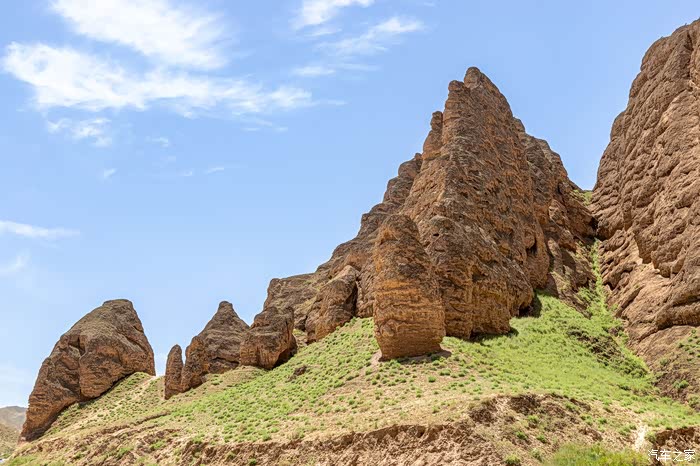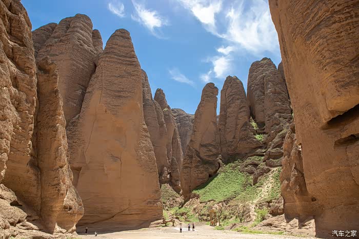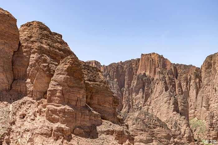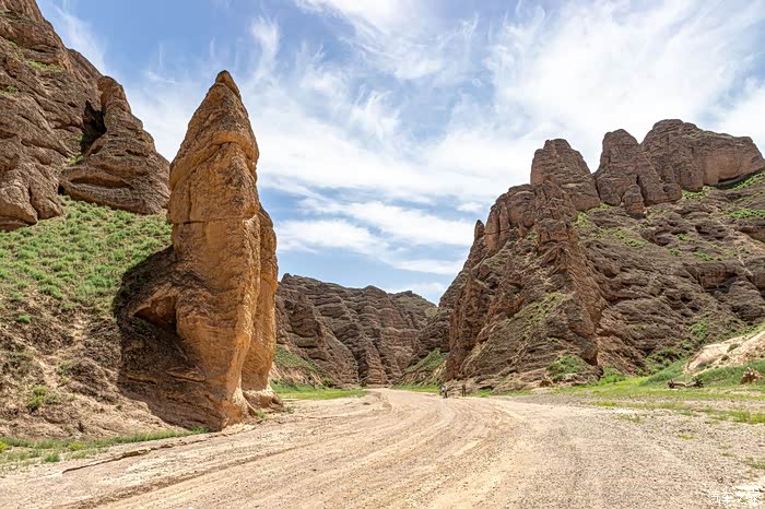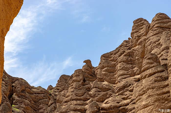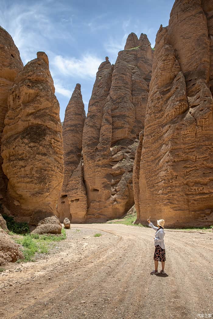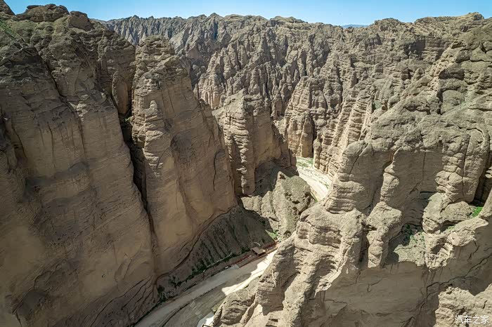 在峡谷行走才能充分感受两侧巨大突兀的峰丛、峰林、石柱给人的震撼,以黄色调为主的群峰与石柱,在这几乎寸草不生、岩石裸露的干旱山峡中,更让人感觉到一种苍凉冷峻。
