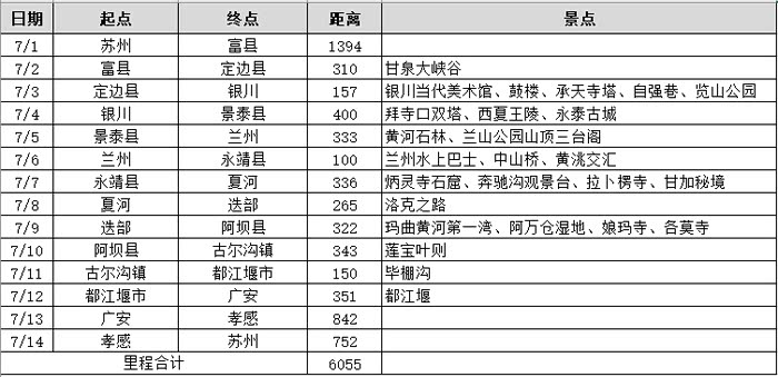 本次自驾十三天,行程5927公里