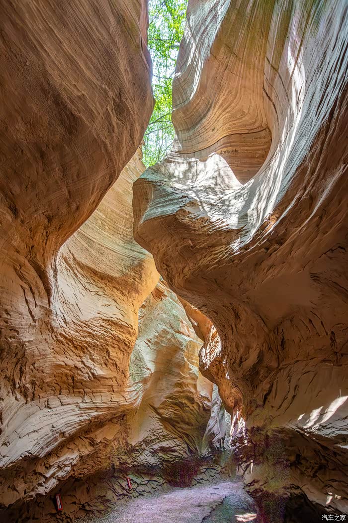 甘泉大峡谷的最佳观赏时间是11点-14点,阳光会透过峡谷缝隙打到红砂岩,在不同的时间,不同的角度,岩石呈现出的颜色也是不一样的。