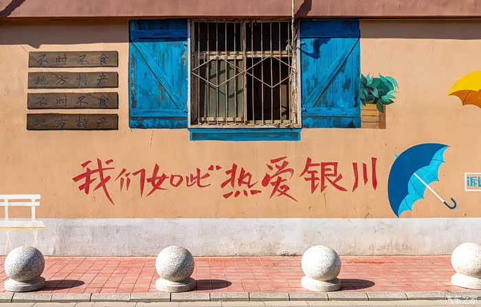自强巷以其特色的涂鸦墙绘而闻名,这些墙绘不仅成为了拍照打卡的热门地点,而且也体现了银川的文化和氛围。