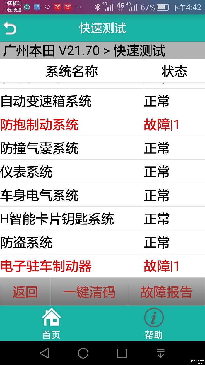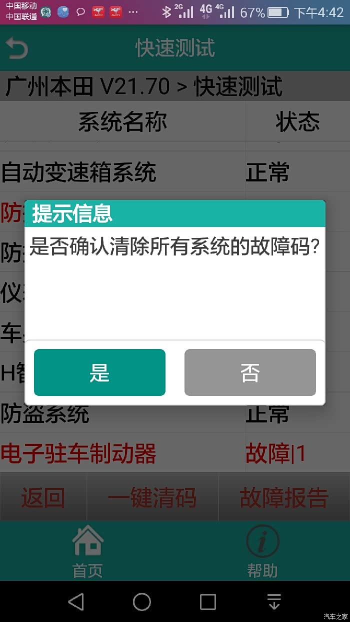用技师盒子连接车的电脑,读取故障码,显示是电子手刹开关故障,消除故障码后问题依旧。