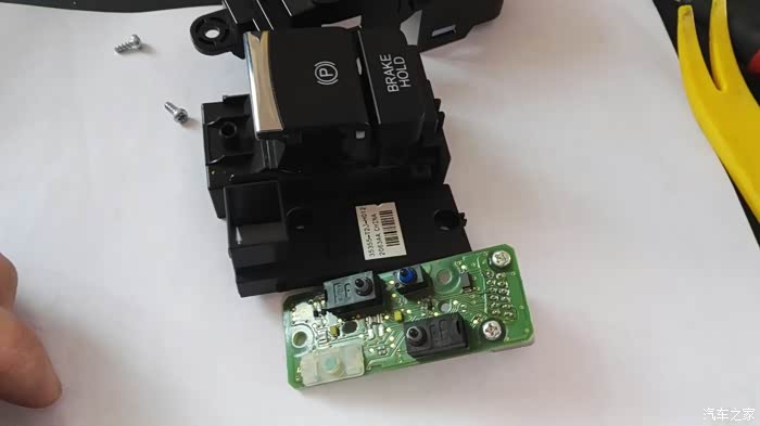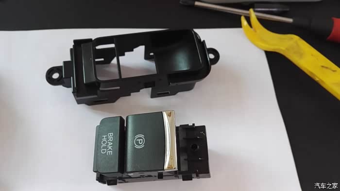 在老婆的车拆下电子手刹开关装到自己的车上,故障灯熄灭,电子手刹工作正常,说明问题出在开关上面。