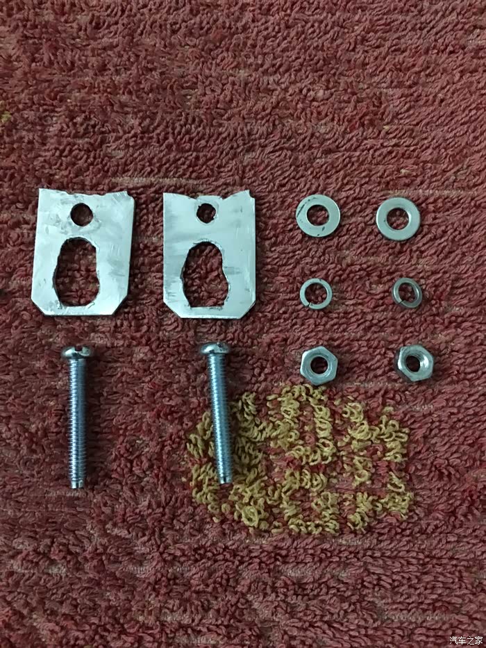 自己制作的喇叭螺丝延长铝片,开始用塑料制作,实在不好操作。后来发觉铝片才是最适合的,第一是轻,第二是不用担心生锈,第三是硬度足够